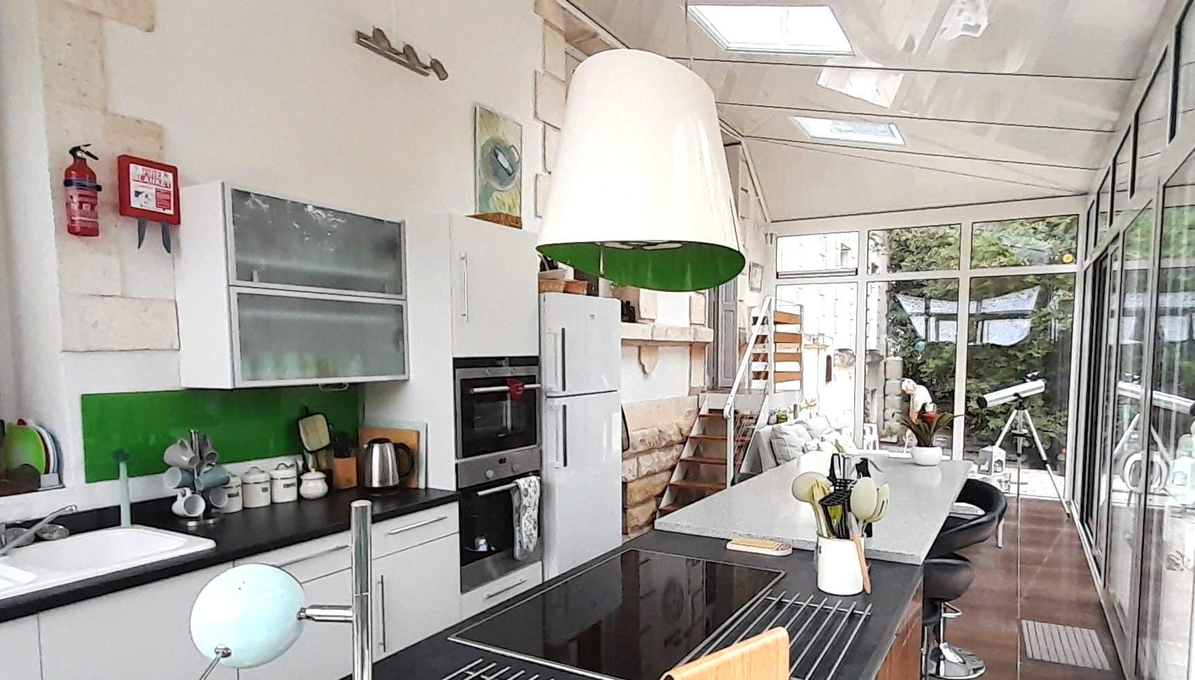 – Cuisine (30 m²) – Très lumineuse, avec portes vitrées donnant accès à la terrasse/espace repas (70 m²)