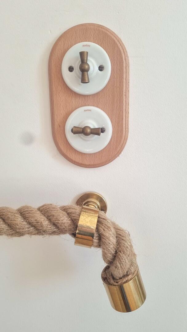 Finitions de qualité : interrupteurs en chêne et porcelaine, matériaux de qualité